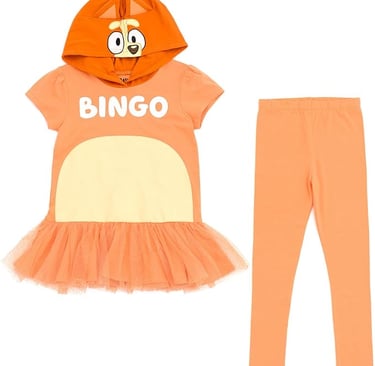 Bluey Bingo Girls Cosplay T-Shirt Dress and Leggings Outfit Set Toddler to Big Kid
